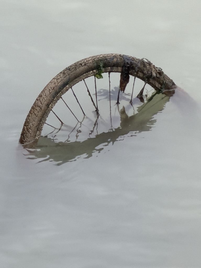 The header picture today was not taken at the Cockle Ponds. It was over the other side of the water, next to the hard where i saw this bike wheel, semi-submerged, which I thought might make an interesting shopt, Especially in mono. It’s almost there already