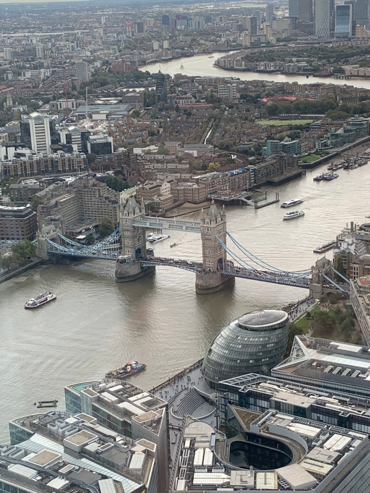 After our experience with Antony Gormley, we went across London for our appointments with Shard. Taking two lifts to get us to the observation deck at 801 feet. Being prepared, I had binoculars with me so we could enjoy the wonderful views of London. We enjoyed a glass of champagne, as you do and I partook of the virtual reality roller coaster which was pretty good.