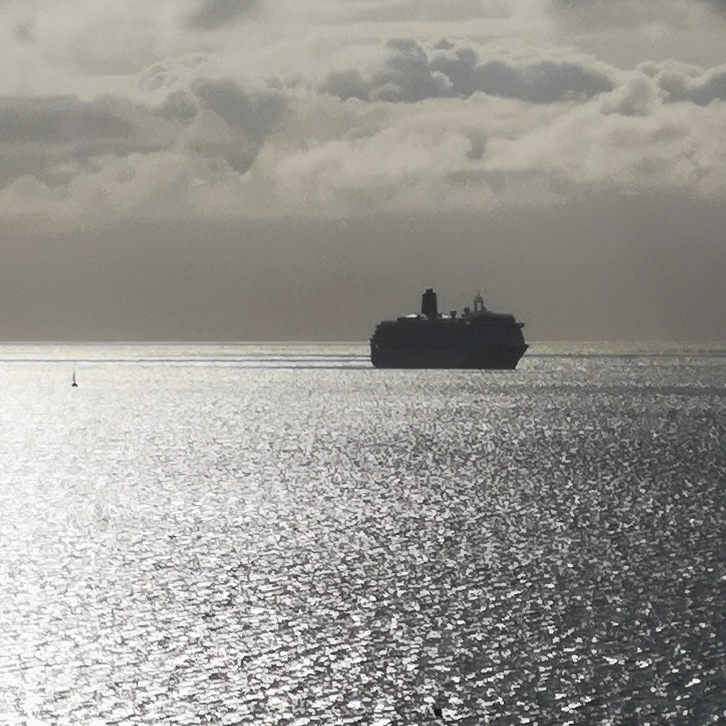 Admittedly, this could be a cruise ship anywhere. But it isn’t. It’s one of seven ships that were today anchored in the bay off Weymouth, Dorset. The ships are (the only word I can think of) furloughed because of Corona Virus. This is the Aurora, owned by the Carnival Line, The other ships were; Marella Discovery, Queen Elizabeth, P&O’s Britannia, Queen Victoria, Marella Explorer, Queen Mary. The Jewel of the Seas was berthed at Portland Bill. We have been on two of these ships, and were due to go on a third. Then Lockdown kicked in, putting a stop to that.