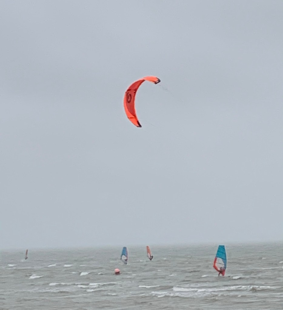 The weather was extremely autumnal, rain, wind, kind of not that cold, but the rain was fine highly penetrating drizzle that makes it really uncomfortable. Well, whilst there is only one kite in the picture there really were a lot of them, I reckon a dozen or more. I can only guess that the water & weather conditions were very good for them, because I wouldn’t want to be out in this – I was quite happy sat in the car.