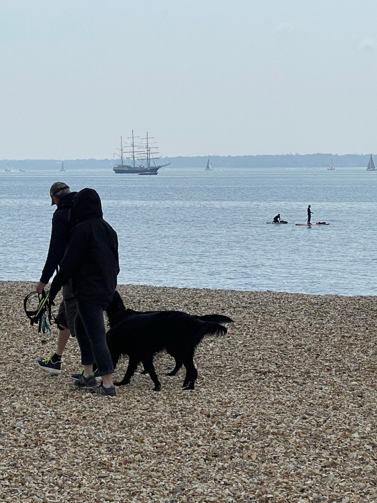 I was pleased to see when we arrived at Stokes Bay that the Sailing Ship Tenacious was still at anchor. We joined the Golden Mile midway between the Gosport and Fareham Inshore Rescue Service (GAFIRS) and the restaurant Pebbles. We walked up to the Bayside Cafe at the Diving Museum and had an ice cream. I had a two scoop tub, Banana and Mint Chocolate Chip – very nice. We noticed that the gate in to Browndown was open, which meant we were allowed to go in and explore the limited area that visitors are allowed.