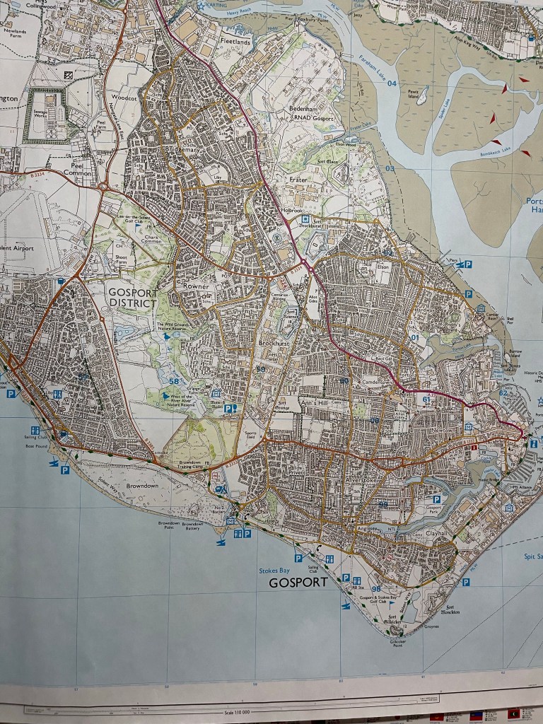 I had this map of Gosport specially printed some months ago. It has been sat rolled up in a cardboard tube waiting for the end of Fantasy Holiday 21 and for me to make up my mind what I am going to do with it. I’ve made a decision.