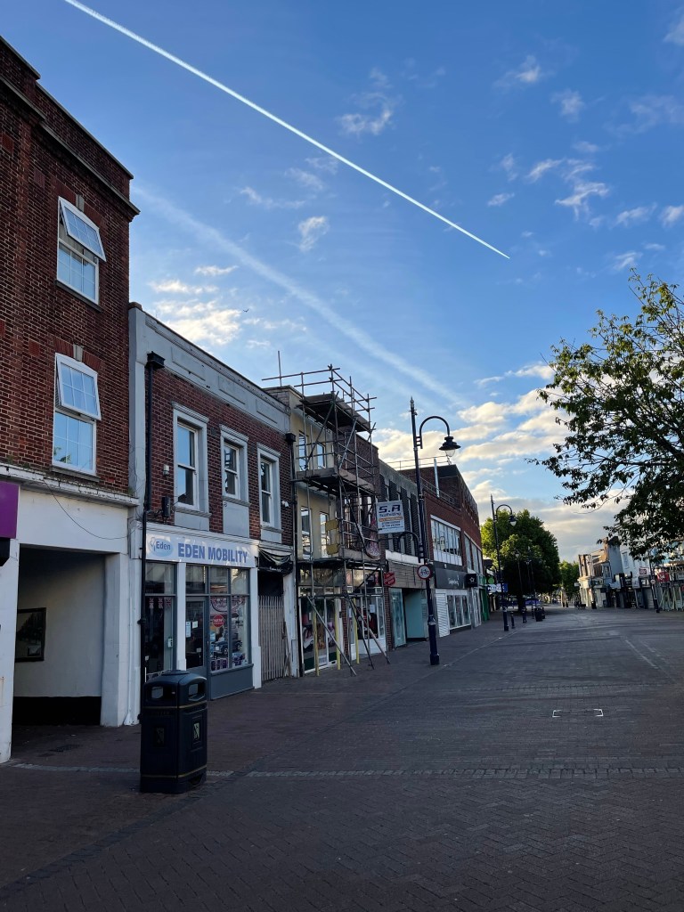 I’m drawn to this photograph because of the fresh & straightness of the contrail heading almost directly along the high street. I suppose in some remote kind of way it is a street encounter and so germane to today’s post.