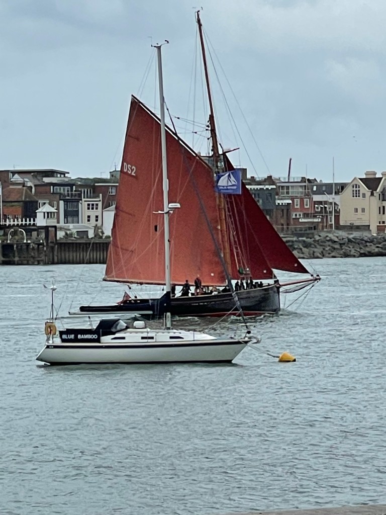 I went out for my lunchtime walk and as I got near to the ferry terminal I could see an unusual set of sails;