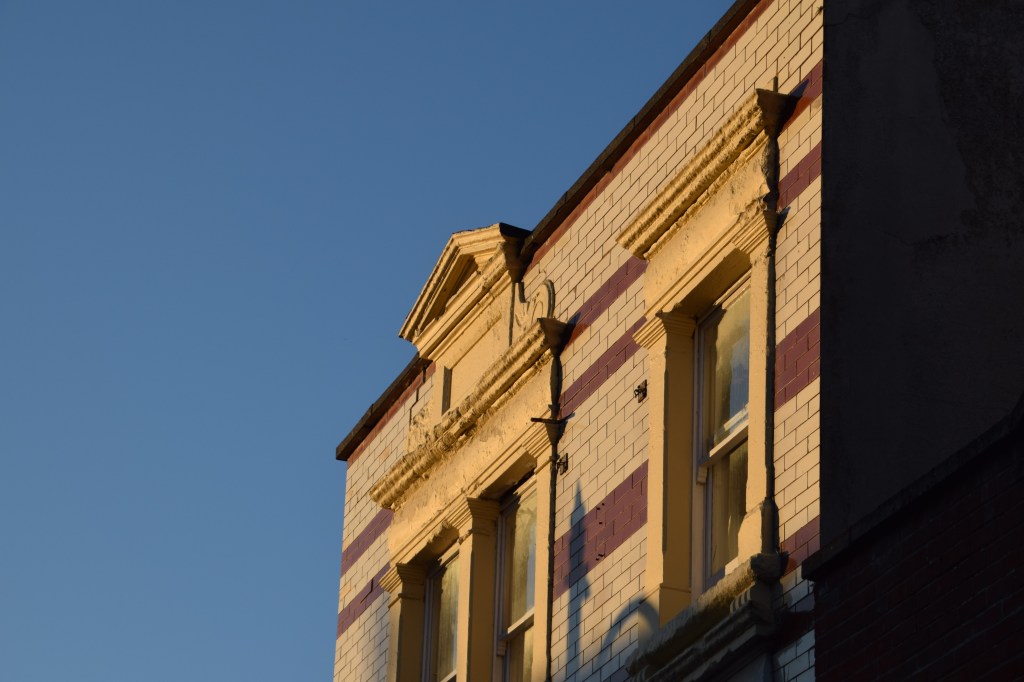 Todays writing is about this mornings walk. I wanted to do some video so perhaps an little bit stupidly, I got up at 0500 and got out really early. The light was really nice. I like the header picture because if the way it shows the tower blocks receding in to the distance and daylong with the light showing the colours makes for a very pleasing picture. THe picture below appeals to me because of the golden colour of the building contrasting with the blue sky, along with the detail of the brickwork and shadows just gives me a warm glow.