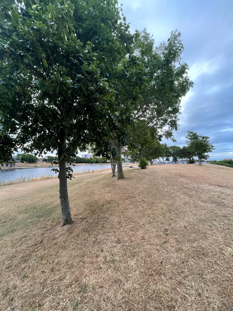 I changed my route by only a few yards. I wanted to have a look at the trees near the Cockle ponds. They are out in the open. Apparently, trees that are exposed to the wind develop their roots a little bit differently, building stronger roots on the side from the direction of the prevailing wind to make it harder to blow them over.