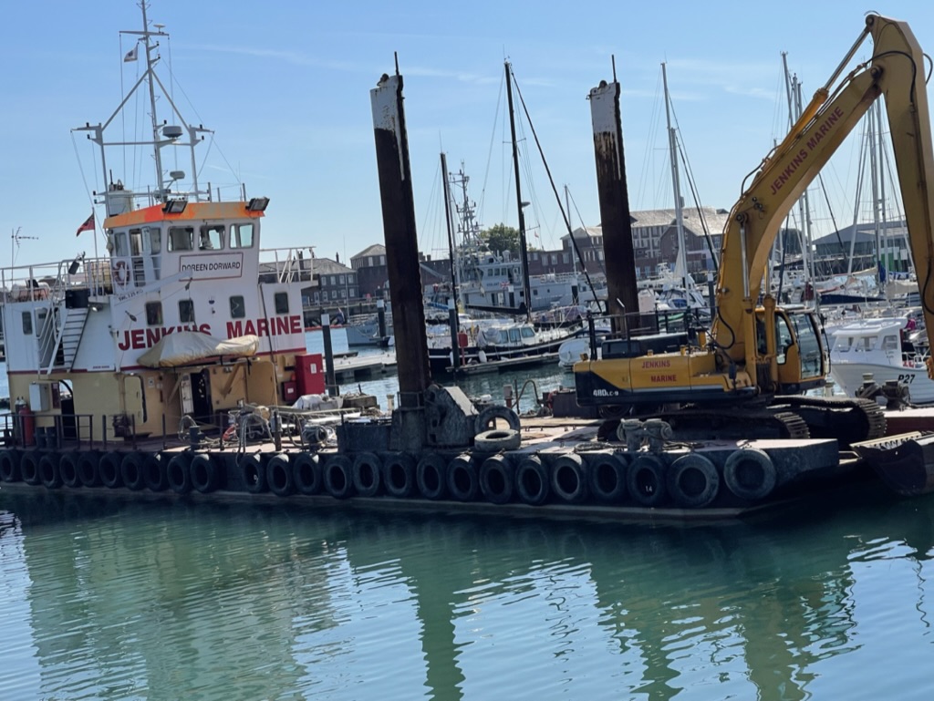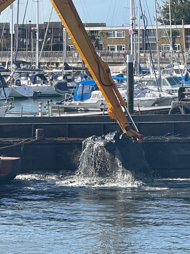 I’ve taken a few pictures of the dredgers that have been working in Haslar Marinna, but it has nearly all been very early in the morning or at the weekend. today, I went for my lunchtime walk, and did the usual thing walking down the high street and carried on to the Haslar Marina Wave Guard.