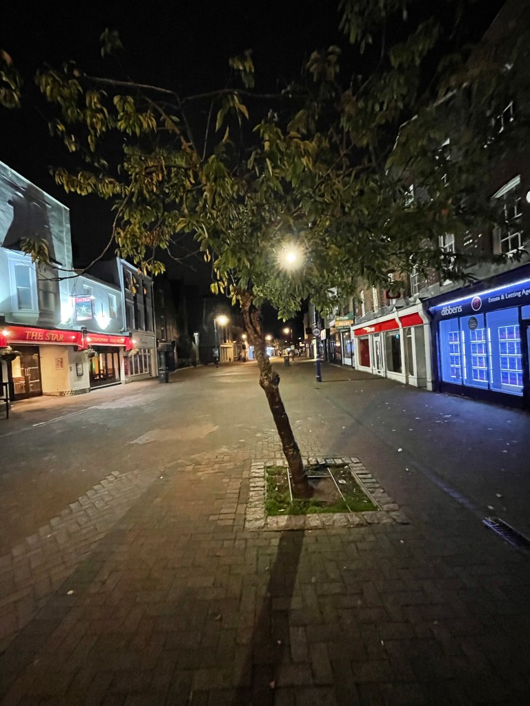 I went for a lunchtime walk. I didn’t take any pictures down the high street, but, I did pay a lot of attention to the people on the street. The workshop book doesn’t say that all pictures of “normal” people are bad street photography, but it’s really worth looking for some element that tells a story or makes it special.
