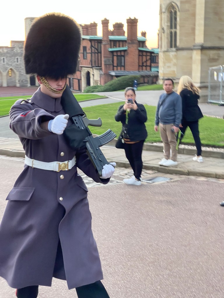Windsor castle is a very active institution. The Coldstream Guards are on duty 24 hours and the King was in residence for part of our day – we think he was probably getting ready for today’s remembrance ceremony in London. He’d gone by the time we were leaving the castle, sadly, we didn’t see him.