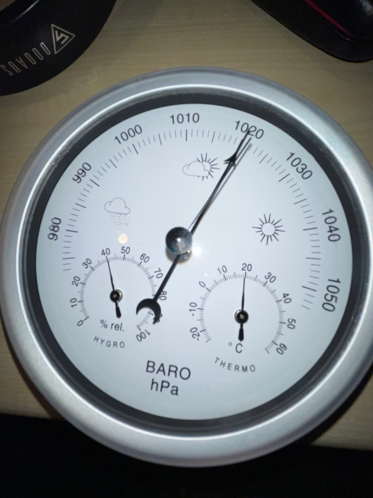 I bought this today. It gives atmospheric pressure, relative humidity and temperature. Why would I buy something like this? I’ve written not that long back about the weather station in Swanage and the old devices that were there. I’d love to have something like that in my garden. Why would I?