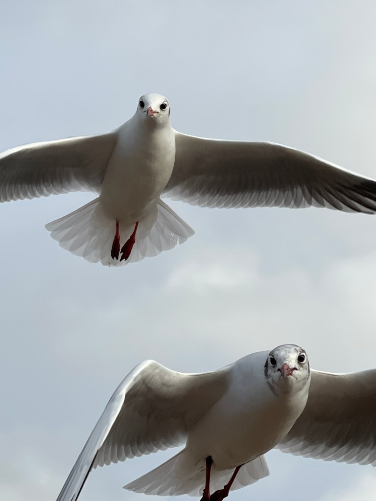 The gulls were waiting to see if we would give them any of our food. We probably shouldn’t have done, but we did. There was a real squabble as usual. There was a bit of a southerly breeze blowing. The gulls are so graceful in the air, hanging effortlessly on thier wings.