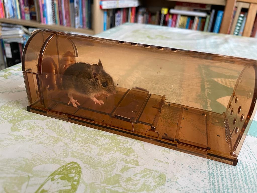 Our cat, Misty brought home a guest for dinner. It took us a while to catch it. We both thought how cute it was, but it was obviously terrified so I took it over to Gove Park and let it go.