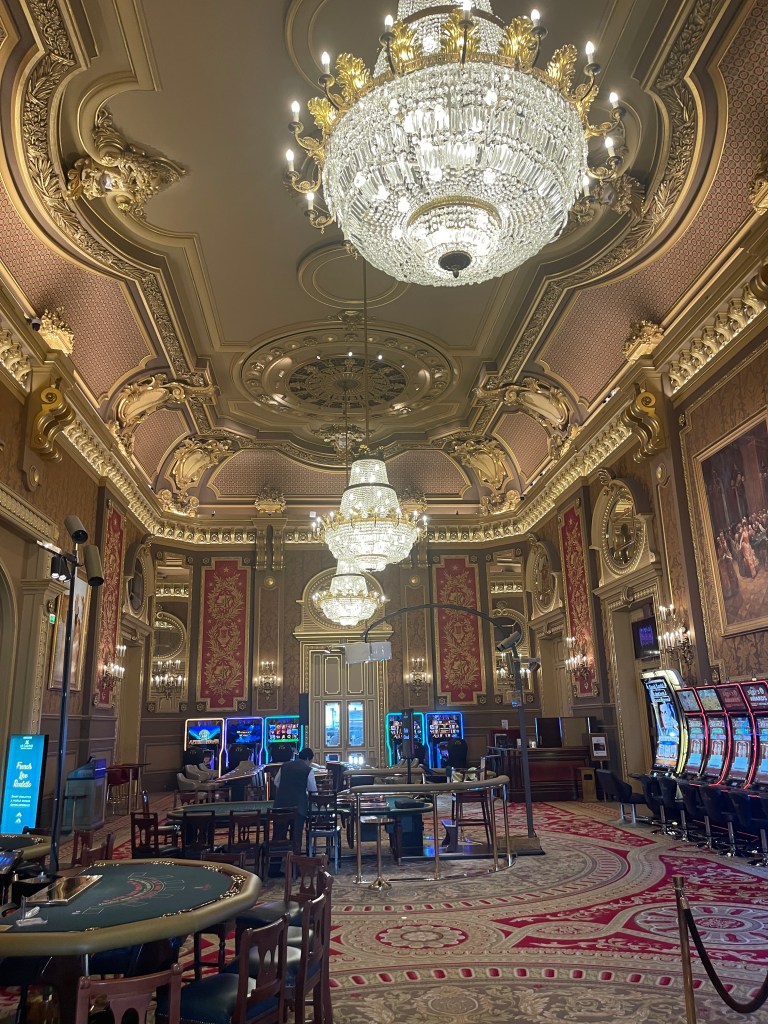 By far the biggest and most opulent casino is the Grand Casino. This building dominates the square. It doesn’t open for business until 1pm but it is possible for a small fee in the morning to view the casino as a museum. We wanted to have a go on the slot machines, but sadly weren’t allowed to.