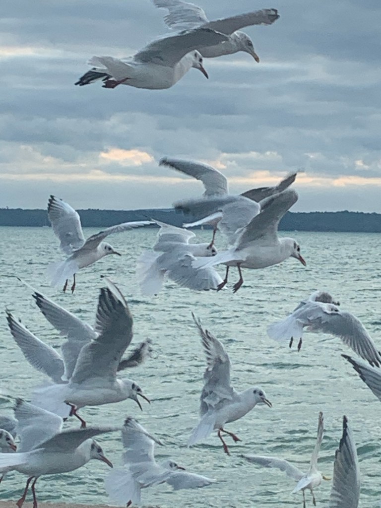 Not these birds, gulls. Although a man almost at the bottom of the garden does feed gulls. Quite often I see half a dozen or so on his roof. Actually, I quite like that he does that.