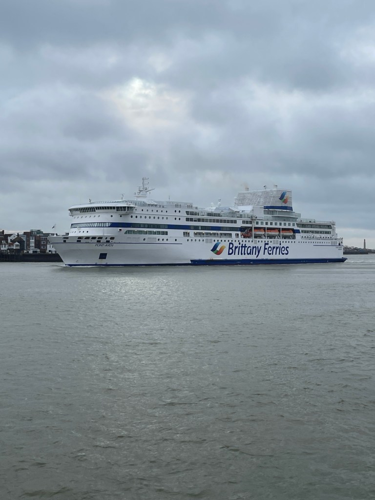 It was the Columbia Star. Unfortunately, she was too far out for me to wait for her, but I could wait for the Pont Aven which was only just outside the harbour, and I felt as though I had enough time to get to the end of the Haslar Marina Pier Wall, arriving at the end just as the Pont Aven came in.