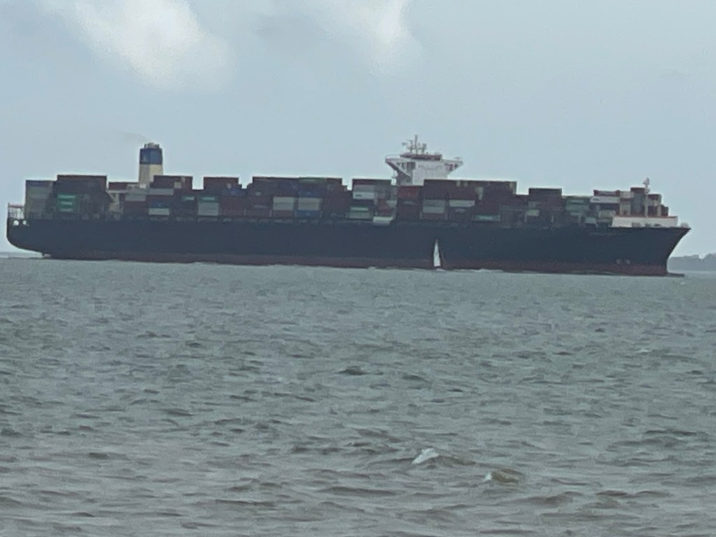 Coming back, the wind was behind us pushing us along a little bit. In the distance we could see a large ship making its way in, not taking long to be able to see that it was a container ship.