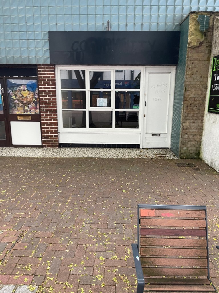 I don’t know you’d call this place “a shop unit“? It used to be a charity place. I think they’ve moved to a better, bigger, brighter place, which in its own right is a good thing. The problem here is that you have to look quite closely to see that there is a broken pane in the window. More than broken, smashed.