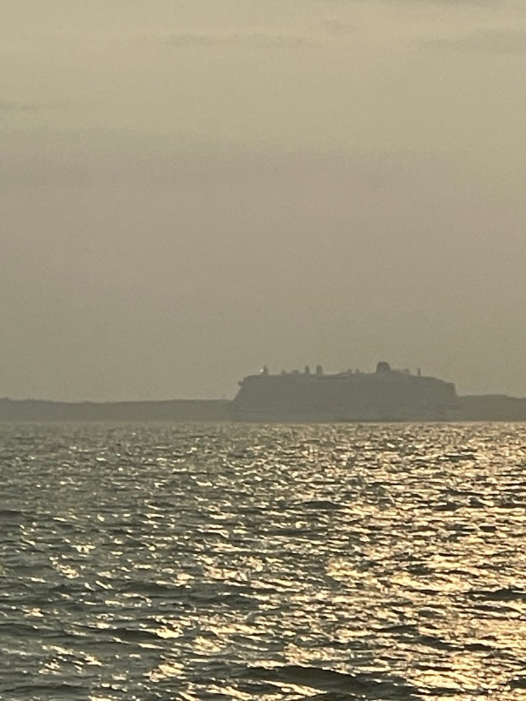 After today’s meal (Sunday), we went to Lee on Solent and sat in the car, on the waterfront for about an hour. We watched the Arvia, one of the P&O cruise ships for part of her departure from Southampton. It was one of the most relaxing hours of the whole weekend.