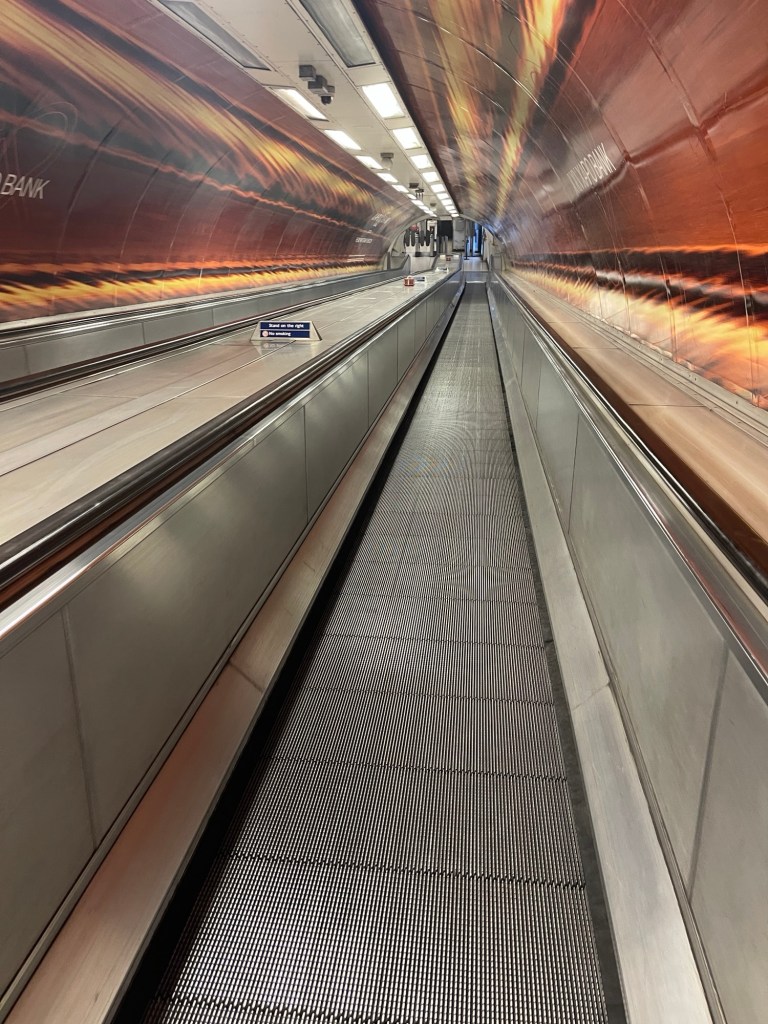 We went to London today. We arrived at Waterloo, needing to get to Leadenhall Street. Never been there before, it’s near the Bank of England. We took the Waterloo & City line – that’s one I’ve never used before, but it was convenient. Only to stops Waterloo & Bank which means that you pay only at the Bank end. When you get off at back one way back to the surface is by using the travelator, it’s quite a long one. That’s today’s picture.