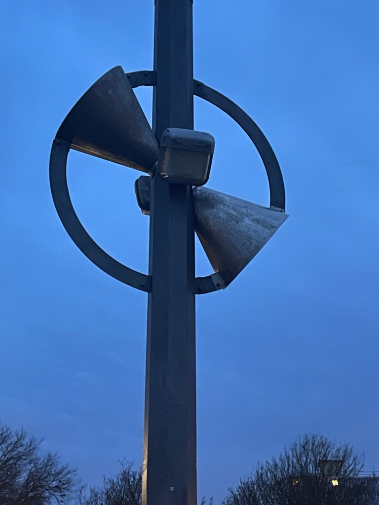 The cones in the picture are in the centre of the millenium time-piece off the Esplanades. They are a recreation of the time and space model developed by Albert Einstein.