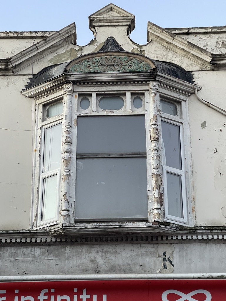 Gosport High Street saw major development during the 19th century, especially as the town grew in importance thanks to its naval connections. Many buildings from this era remain, especially above modernised shopfronts. This window likely belonged to a late Victorian shop-residence combo.