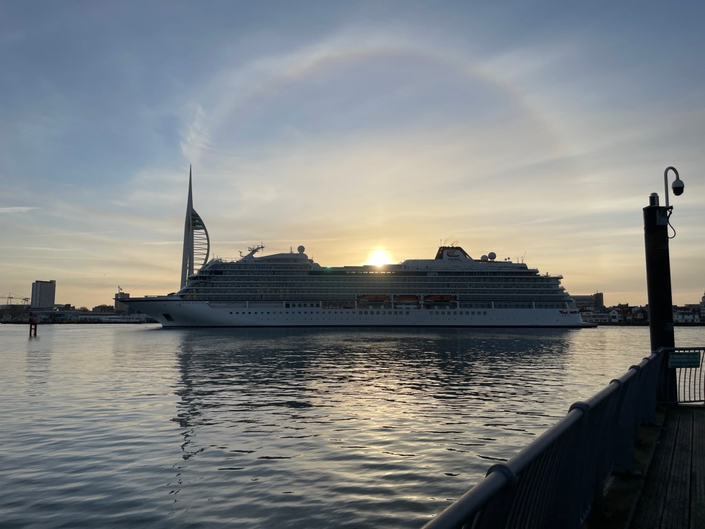 I don’t have a picture that captures the essence of tonight’s club activity, so I’ve used one of the pictures I took on this morning’s walk. I must admit, when I took the picture I didn’t notice the ring of light arcing across the top of the ship from the tip of the Spinnaker.