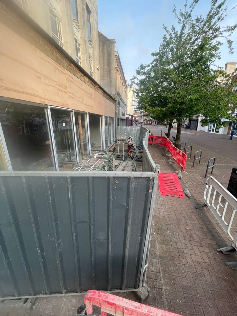 Once you know the context, then the picture tells its own story. For weeks now I have been burbling on about the McDonalds on The High Street. Up until yesterday morning, for a lot of the time, the frontage of the new restaurant has been covered in a high quality screen shielding activity from prying eyes.