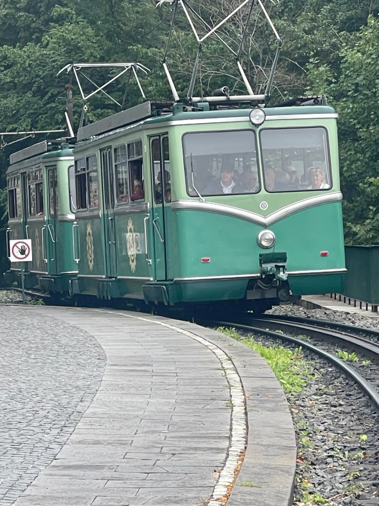 So today saw us moving further up the Rhine to Königswinter where we visited and took a ride on The DrachenfelsBahn one of only four surviving rack (a cog wheel on the train engages with a rack between the rails to haul itself up the 1-in-5 slope). Because time was limited We only stayed at the top for about 30 minutes.
