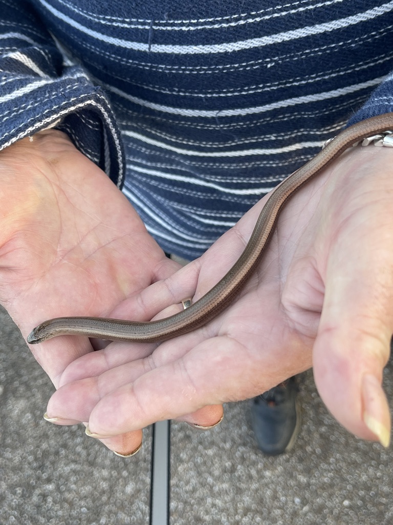 Then there’s the random one-offs like this morning. As I reached the Cockle Ponds, there was a chap walking his dog. He had his hands clasped together, and was making a beeline for me. He was very keen to show me the slow worm that he’d rescued. It was hidden up his sleeve and came out into his open hands. He put it down in the grass.