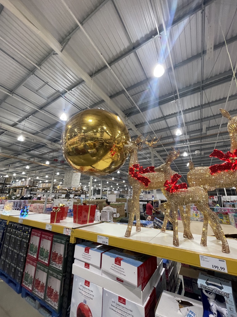 We went to Costco today, to do a bit of shopping in preparation for Aurora’s first birthday party. I saw this giant bauble there. You don’t really get a sense of scale from the picture it must have been at least four feet across. i didn’t dare ask Elayne if she wanted one, it would have filled the lounge!