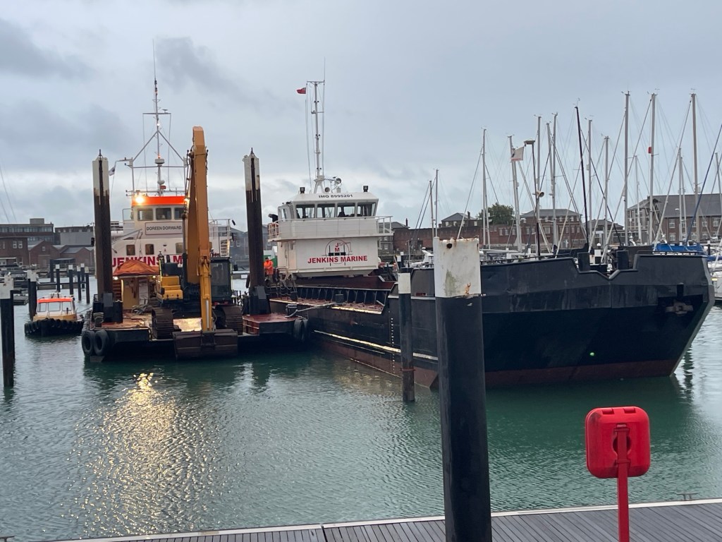 I’ll give you two pictures today. The first one are the dredger and the hopper holding the dredged material. They were in Haslar Marina. I have seen them before, but can’t remember when, probably a few years ago.