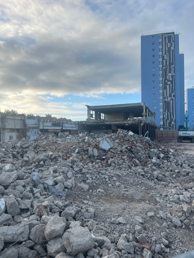 I went for a walk this morning, mainly to see how the bus station is coming along I must admit that I was surprised at how much of the structure remains standing.