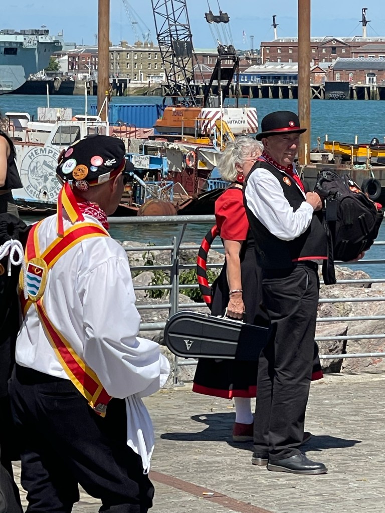 The pubs and the street cafes were all very busy. With the Wetherspoons being unusually loud. Lots of people strolling along. As I got toward the end of the high street I could hear the tinkle of bells. Turning round there were a whole bunch of Morris dancers walking down the street. I got the impression that they had been performing and were returning home.