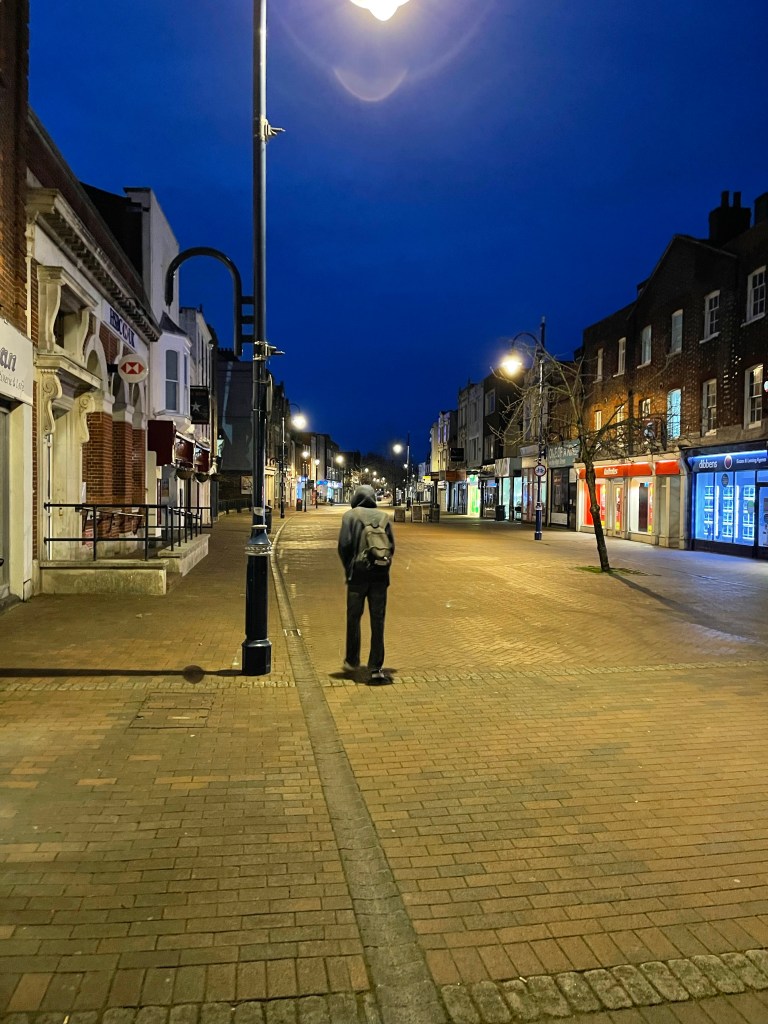 It has been an interesting week for walking. I managed ego clock up just over 36 miles, so I’m quite pleased with that. I’ve changed my route a couple of times to include the high street at different times. For example, I generally walk down the half of the high street at around ten past six in the morning. Unsurprisingly, at that time of the morning, there is not a lot happening. Usually, it’s just Greggs that is open, and they even have their table and chair sets out for use.