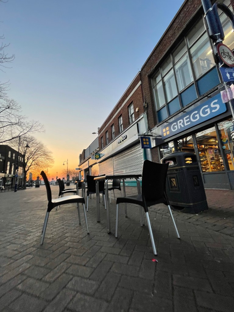 These particular empty chairs and tables do not reflect the state of Gosport’s High Street, especially as the picture wa taken at about ten past six in the morning.