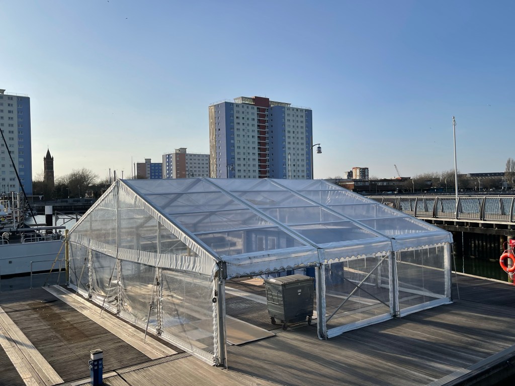 This new facility, which has only recently been put up. I have been speculating about its purpose which could be anything from being a supplies storehouse, through to a wedding venue;