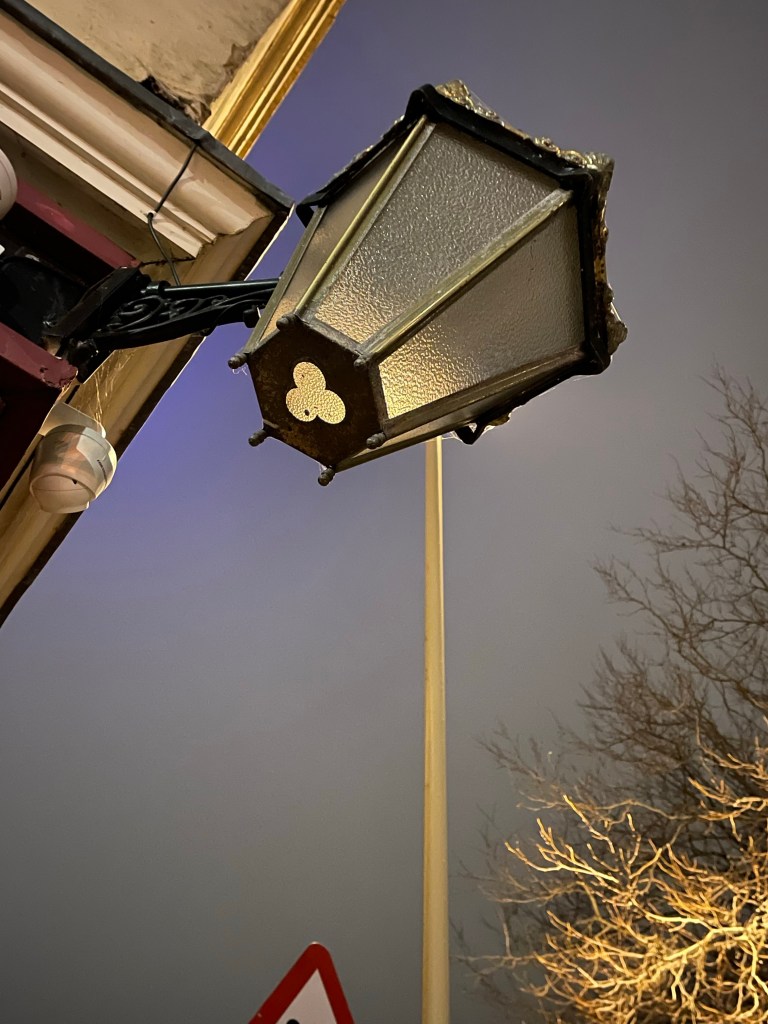 When I went out for my walk yesterday morning I decided that I would try to focus on detail rather than the wider shots that I have been taking. I thought that the lamp over the door way of the Clarence Tavern would make an interesting subject. My first effort below wasn’t good enough;