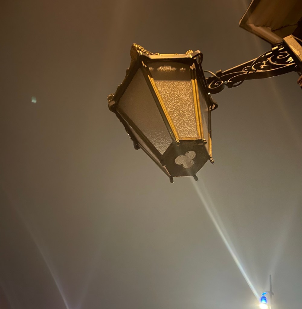 You see something, you look at it, you take a picture and then you look at it on the iPad and you hold your breath. The major flaw with this picture are the various components the lamp pole; I did want the light behind the lamp, but didn’t expect the lamp post to be quite so prominent. I’m not sure about the housing upper left below the lamp’s bracket, is that a webcam? The street sign intruding in to the bottom of the frame, composition is dreadful, considering that I wanted to get the lamp as a guard dog looking down on everybody that passes underneath. But then I look at it, and I see the sharpness, where this is a night picture, and you can see the mottling in the glass in the lamp, and I am just so pleased with the camera in the iPhone 12, and feel so guilty that the phone camera has put my DSLR in to hibernation.