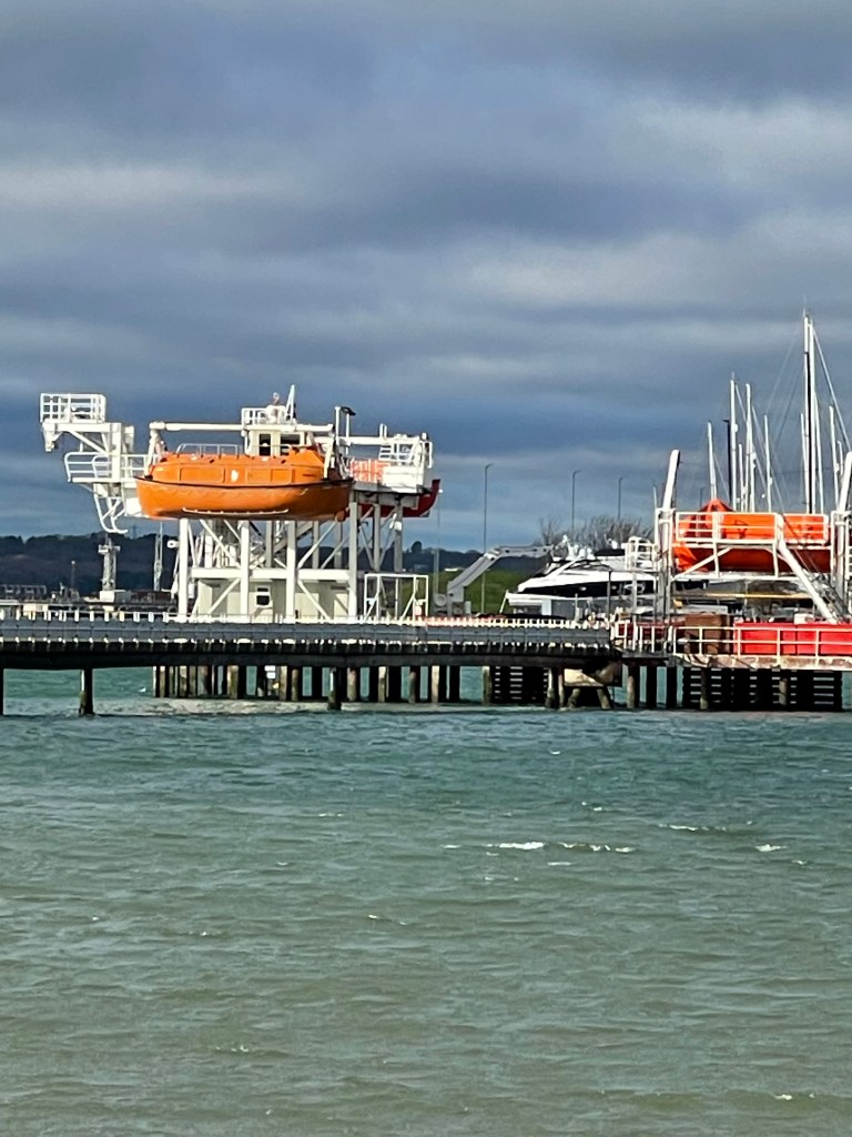They are on a pier owned by the Warsash Maritime Academy. I think it is for students to practice being launched in a lifeboat, to experience a drop. I thought it would be quite interesting (entertaining) to find out when it was happening, and go and watch.