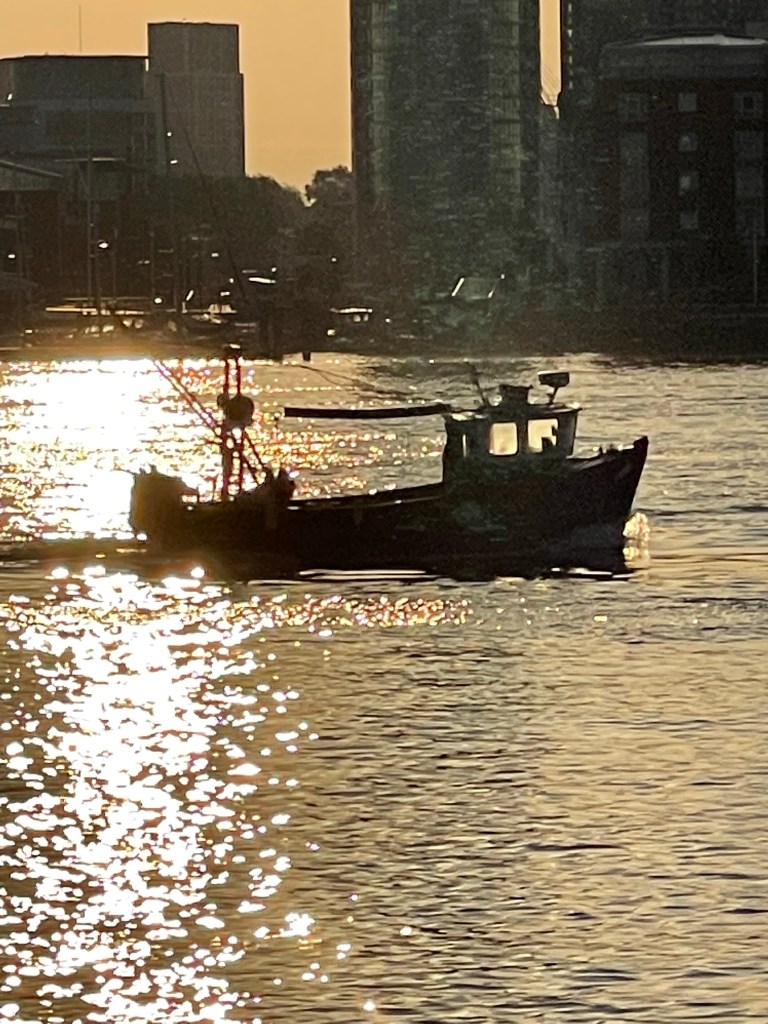 Of course the light was different, but the main differences were that there were people around, lots more people. Out strolling, or on a mission to a social event. I did my normal walk anti-clockwise. Along Stokes there are a number of food places. As I walked along, there was a mix of Thai, Chinese, Kebabs, Burgers assailed my senses. I found a geo-cache, only my second one, but nicely found. Sadly, I didn’t have a pen to write in the log book, but I will Monday. I then walked on down to the cockle ponds. There I paused for a while to look at the pond life, and there was lots of it. There were some translucent fish swimming around at lower levels, but there were some small creatures, sadly I have no idea what they are, but for their size what impressed me was the speed at which they moved. For some reason, my mind was drawn to the film “Blade Runner”, a science Fiction starring Harrison Ford, it was the city scape, and the flying cars I could imagine the chaos, and all that life in the pond running around on their projects – whatever they are it was fascinating.