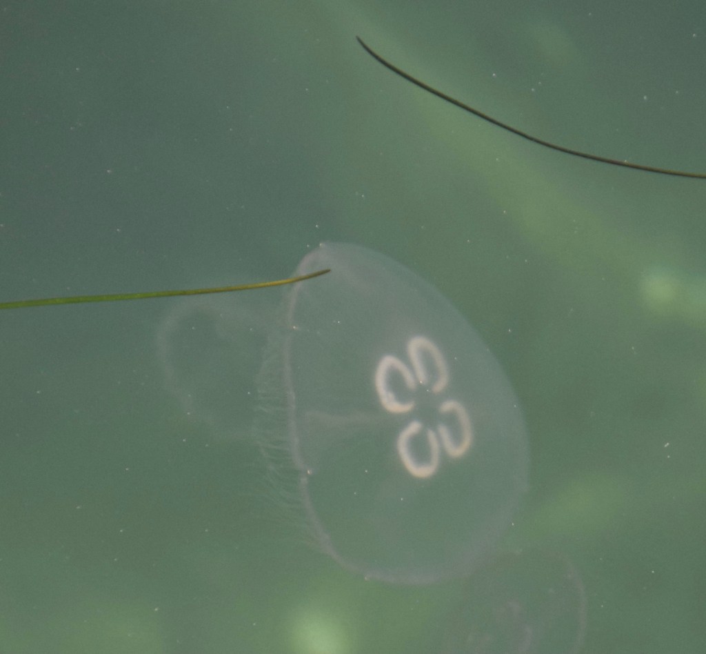Anyhow, I took this picture this morning. I thought it would be interesting to look in to what this is. It’s a Moon Jellyfish. You can tell this from moon shaped patterns at the top of the body. It turns out that this is the “Medusa” phase. The little girl beasties will be producing eggs like nobodies business, and the boy beasties will doing their stuff to make sure that the baby jelly fish which at the moment will be little more than larvae burrowing into the bottom of the Cockle Pond, and then in about 6 months they pass away, but the cycle starts again. Apparently they live longer if they are in captivity. This is due to a cleaner environment and less stress.