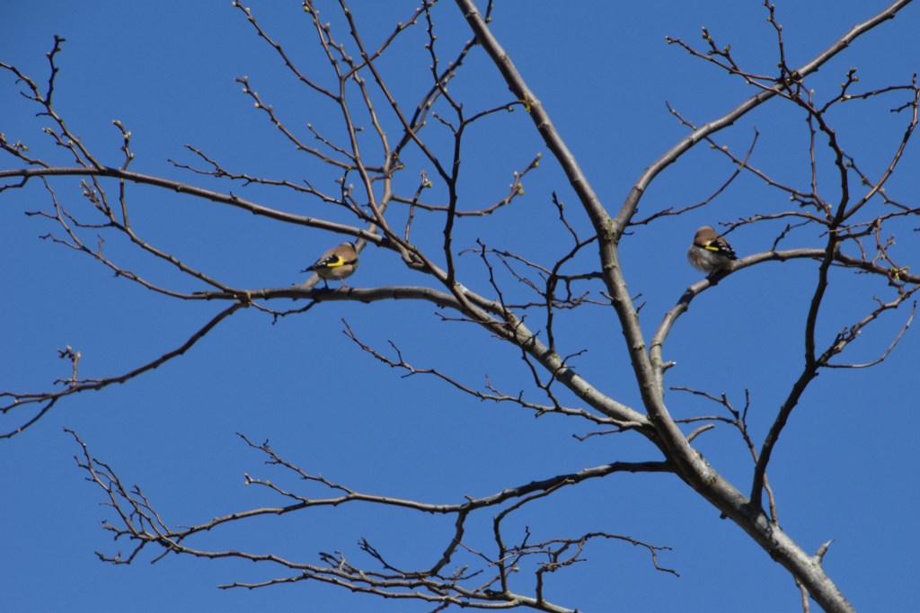 I must admit that I thought that it was announcing and defending it’s territory. But it appears that Goldfinches are not Territorial, which is, presumably why they were both content to sit in the tree, close to each other (at least, I think they are both males). They are welcome to come down, there’s plenty of food.