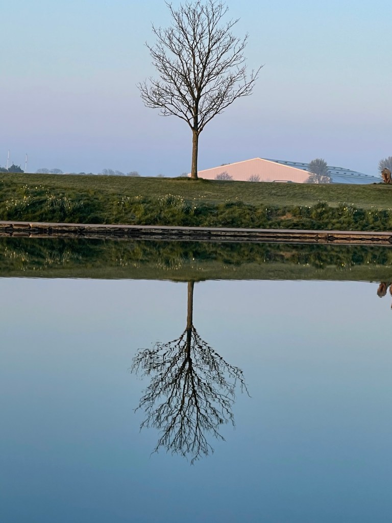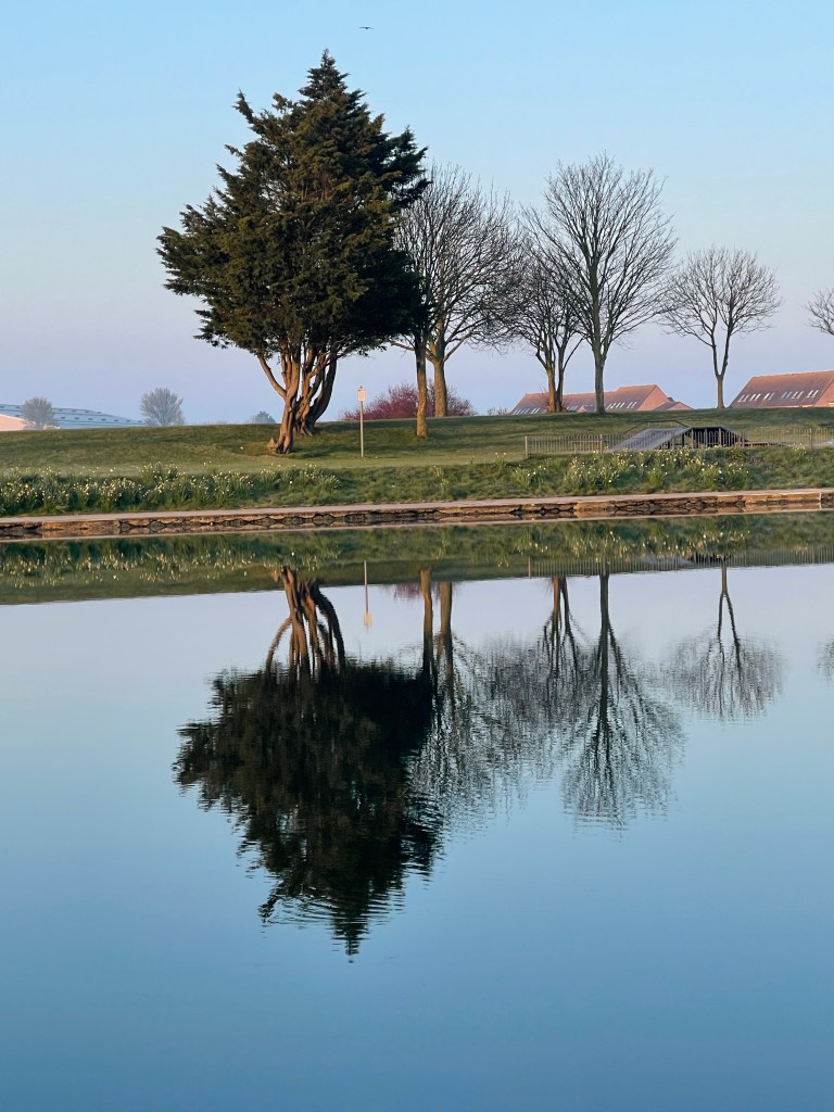 This is one of several pictures I’ve taken this week that really appeals to me. The picture was taken at the Cockle Ponds on one of my morning walks. It is a favourite picture because the reflection of the tree is almost perfect, not quite but good enough. The frustrating thing is that I couldn’t either get rid of the building, or position myself to include it in the reflection. This is one of several pictures of this type that I took this particular morning. They all pretty much suffer from the same problem. Here’s another example;