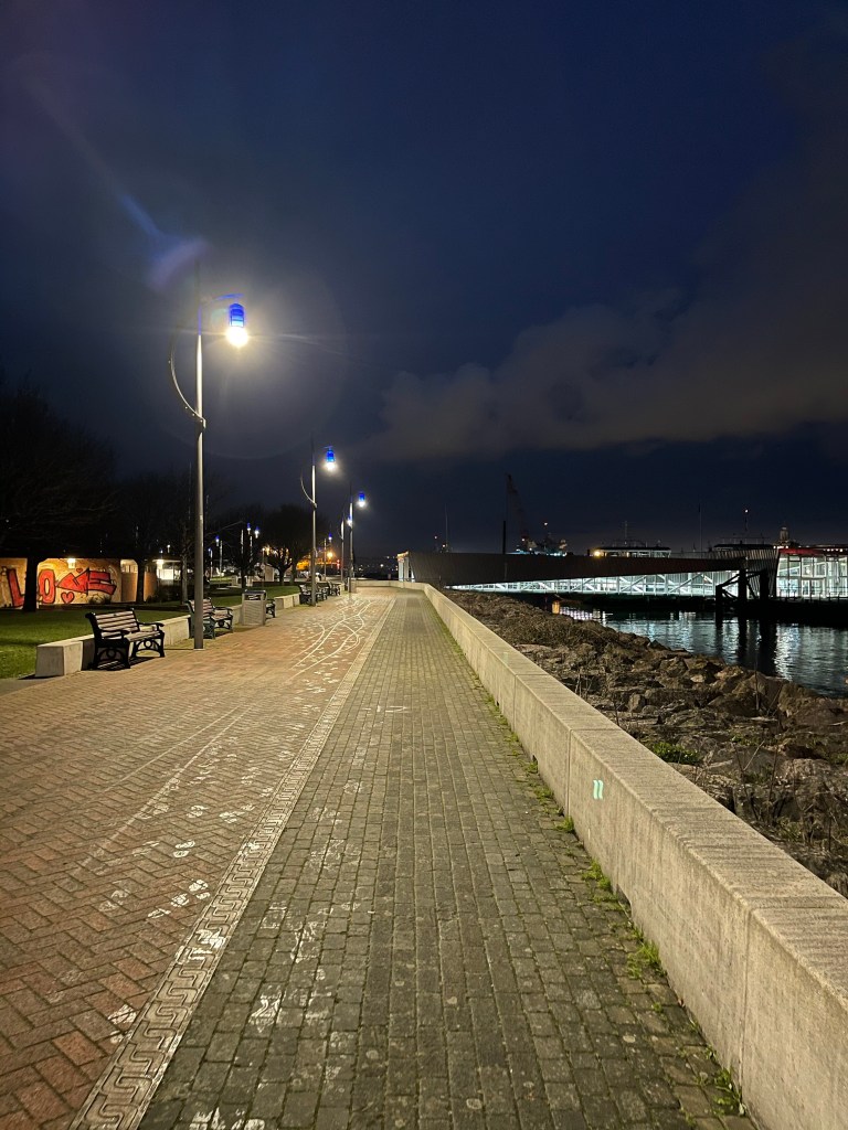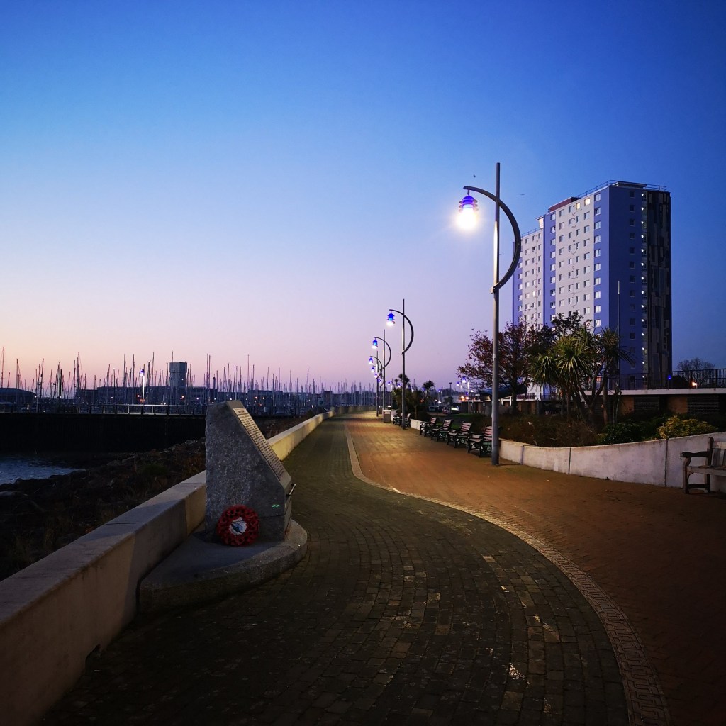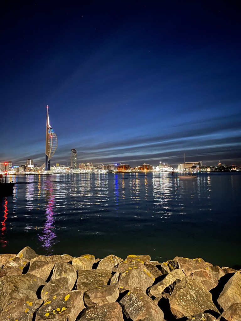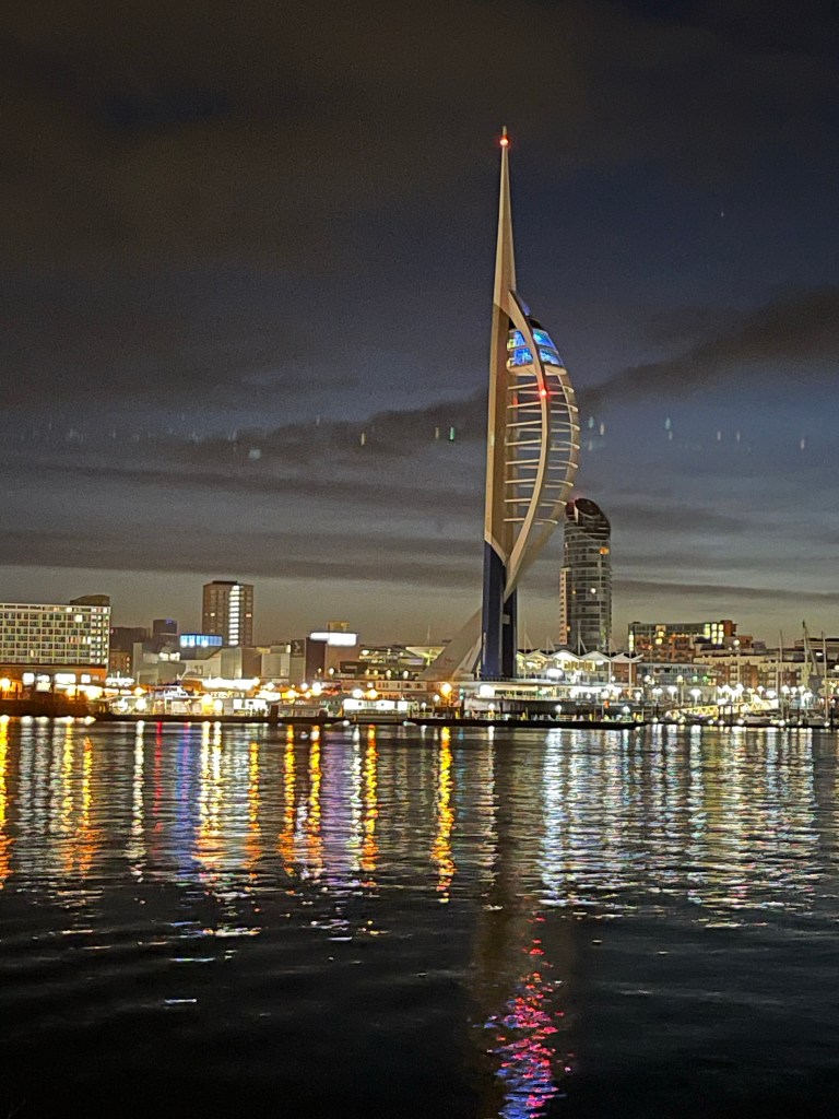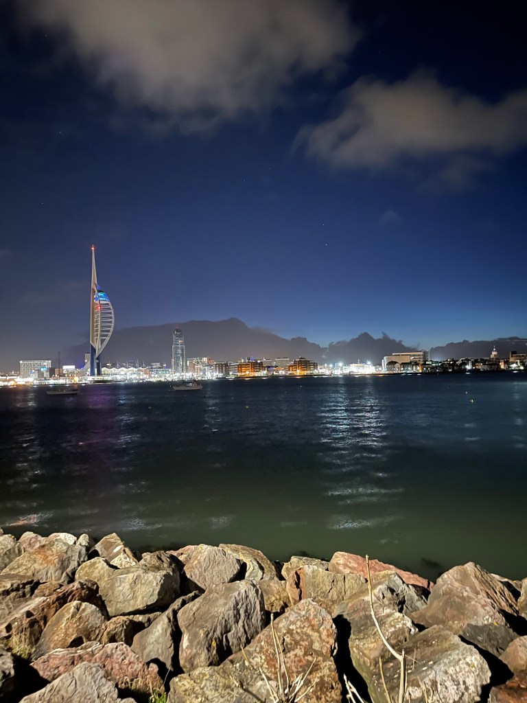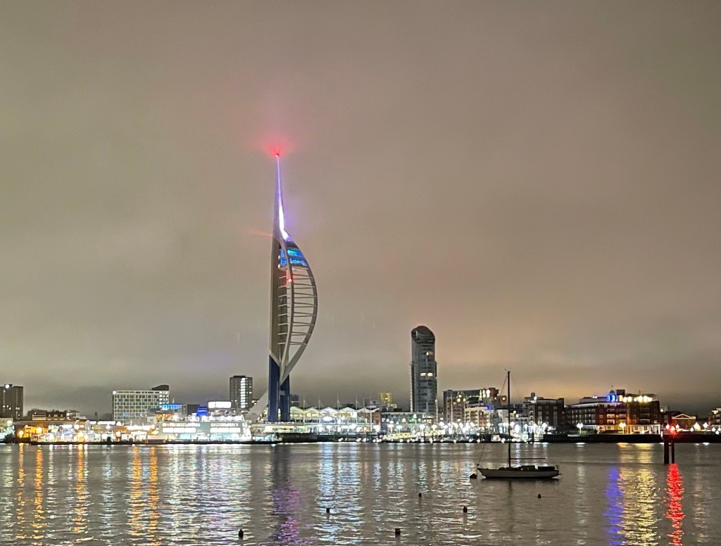 There was a fog in the Solent. It either hadn’t reached here, or was receding. The low cloud was causing the lights on the spinnaker to become diffuse. I didn’t notice it when I took the picture. But I like it.