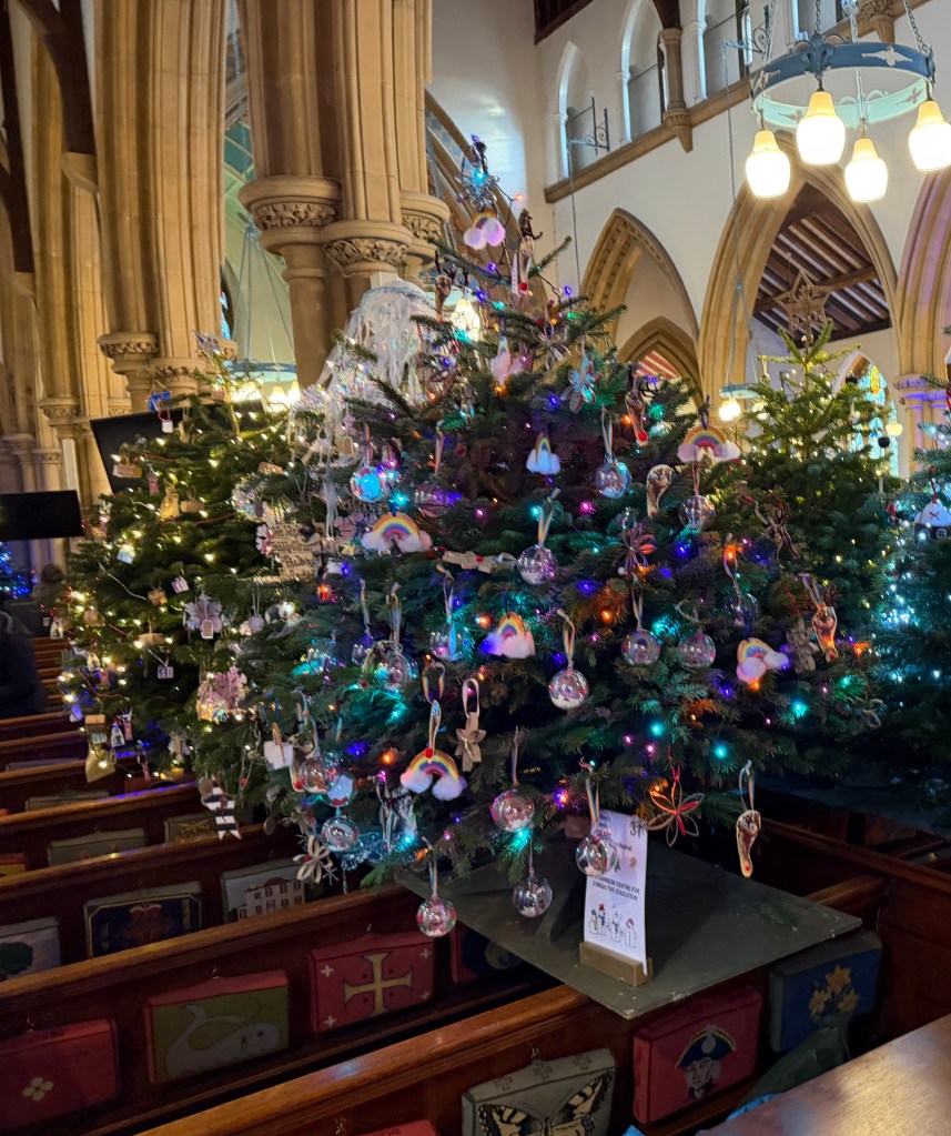 It was quite a delight wandering around the church, admiring all the different trees and how, in a lot of cases, the baubles on the tree (many, perhaps mostly, handmade reflected the function of the organisation. One that made me chuckle was The Shed, which had a rotating shed instead of a fairy.